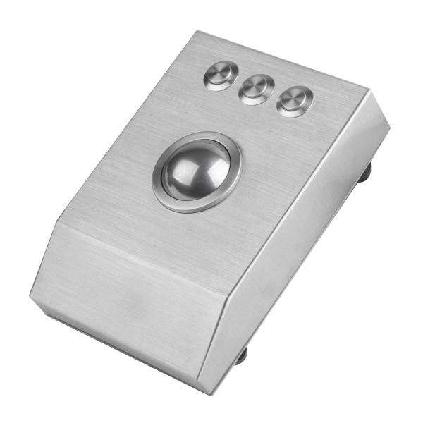 2. with 3 sealed stainless steel mouse buttons designed for right & left clicking and scrolling up and down with ball rolling, stainless steel top plate with threaded bolts for top panel mounting solution.
